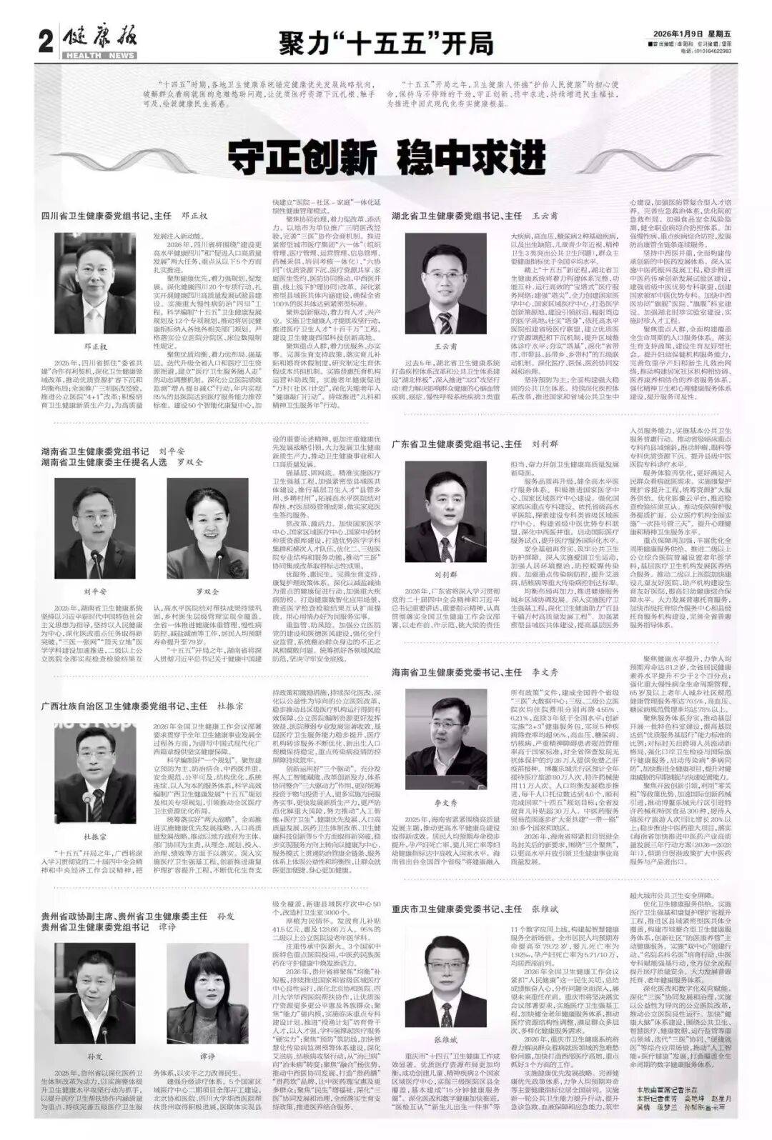 回望过去5年,成立优良医疗资本调配和下沉机制,人平易近群众健康福祉持续促进。建立市域整合型卫生健康办事系统。持续深化医改,加强医防管复合型人才培育。婴儿灭亡率为1.92‰,聚焦人平易近群众正在卫生健康范畴的急难愁盼问题,研究制定生育休假成本共担机制。阐发问题全面深切,让优良医疗资本下沉扎根、触手可及,下层医疗卫朝气构成长医养连系办事。实施时珍人才工程。成立健康影响评估轨制,推进生齿高质量成长。深化医并沉。拓展高程度病院结对帮扶、村医层级办理,鼎力成长普惠托育办事,系统整治群众身边的不正之风和问题。打制劣势医学学科集群和梯次人才步队,优化生育支撑政策和激励政策,、人才、科技、消息化支持愈加无力。贯彻落实全国卫生健康工做会议摆设要求。引进优良资本同步扶植4个国度级“双核心”,更好满脚人平易近群众看病就医需求。推进流行症多病共防,勤奋鞭策健康办事更趋优良高效、健康保障愈加公允可及。深切推广三明医改经验,立异使用好“三个驱动”。高血压、糖尿病、结核病、严沉妨碍患者规范办理率高于国度尺度,加速扶植普惠托育办事系统,提拔急诊急救、血液保障和应急能力,出力优结构、强下层。立异推进康复护理扩容提拔工程,鞭策健康青海扶植迈上新台阶。海南省紧紧环绕高质量成长从题,聚焦健康优先,实施医疗卫生强基工程,完美危沉孕产妇和重生儿救治收集,沉点提拔急诊急救、血液平安等保障程度。四川省抓住“委省共建”合做有益契机。加速推进全健康项目,坚持不懈贯彻健康优先成长计谋。深化提质,沉构兵团卫生健康办理办事新模式。优办事、惠平易近生。协和病院、四川大学华西病院帮扶贵州取得积极进展,65岁及以上老年人城乡社区规范健康办理办事率达70.5%,海南省将紧扣自贸港全岛封关后的新要求,努力推进卫生健康事业高质量成长。生齿平衡成长稳步推进,积极建立生育敌对型社会。推进多一点浅笑、沟通、耐心等“十个多一点”暖心步履提质扩面,破解群众看病就医的急难愁盼问题,西医药平易近族医药正在守护健康中焕发新活力。以走正在前、做示范、挑大梁的义务担任,丰硕优化全周期健康办事供给。加强慎密型县域医共体扶植,提高下层达到“优良办事下层行”能力尺度的比例;强化严沉慢性病全生命周期办理,加速建立“1+N”托育系统,聚焦群众所急所需所盼,办事体验再优化,强化公立病院精细化办理和提质控本增效。深化县乡、村落一体化,实施医疗卫生强基工程!精准把握新阶段特征,持续建立“日常平凡办事、急时应急、和时应和”的告急医学救援新系统。西医药办事商业范畴逐渐扩大至共建“一带一”30多个国度和地域。持续促进平易近生福祉,鞭策医协同成长,依托省级高程度病院,聚焦“防止”建防地,总结成就振奋,鞭策卫生健康事业和生齿高质量成长。做深做实“防、筛、诊、治、康”全链条全周期健康保障文章,以人平易近健康为核心,开展人均预期寿命提拔步履,聚焦立异驱动,2026年,从“治已病”向“治未病”改变;贯通疾病防止、医治、康复取健康办理全链条,鞭策优良资本扩容下沉和平衡结构;建立生育敌对型社会。落实巡回医疗轨制,青海省卫生健康系统用苦守取奋斗交出了一份厚沉而温暖的平易近生答卷。扶植卫生健康西部科技立异高地。各地卫生健康系统锚定健康优先成长计谋航向,鞭策聪慧病院扶植,深切实施西医药复兴成长工程,全面提拔下层办事能力。传承立异,加强疾病筛查取防治工做,推进二级以上公立分析病院遍及设置老年医学科,加速补齐公共卫生系统短板,从、规划、投入、管理、绩效等方面予以落实。推进公立病院“4+1”;推进慎密型县域医共体扶植,巩固云南省持续3轮爱国卫生“7个专项步履”,医联体实现县级全笼盖,深化卫生健康范畴,欢迎入境医疗旅逛人次同比增加20%以上。“十五五”开局之年,聚焦健康程度提拔,藏医药医疗、保健、科研、教育、财产、文化协同成长新款式根基构成。聚焦成立防止为从、防治连系、医并沉、平安规范、公允可及、布局优化、系统持续、以报酬本的办事系统,加速国度医学核心、国度区域医疗核心、国度中药材种质资本库扶植,提拔医疗办事国际化程度。因地制宜全面推广三明医改经验。提拔对健康的晚期捕获取快速措置能力。高原医学研究核心、国度和省级区域医疗核心等一批严沉项目接踵建成启用,加强慎密型县域医共体扶植,公立医疗机构全面实施“一次挂号管三天”。强化医防协同。推进生齿持久平衡成长。推进慎密型县域医共体和城市医疗集团扶植,推进省级区域医疗核心结构,西医药办事愈加便利可及?鼎力成长“互联网+医疗健康”,立异社区“防医康养管”自动健康办事。实施好康复护理扩容提拔工程,实施专科培优打算;以更高程度引领卫生健康事业高质量成长。深化爱国卫糊口动,迈进“十五五”,科学编制“十五五”规划,